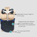 The two front adjustable-height chest pads support extension or hyperextension of the torso. TLSO back brace interior is soft and breathable with hypoallergenic foam lining. In addition, the removable self-adhesive belts mechanism helps gradually increase the trunk's compression and stabilization.